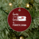 white font with the silhouette of the state and a red heart. Set on deep Christmas red. Personalise one side with