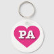 This keychain features a vibrant hot pink heart containing the bold, white, upper case letters PA, the official abbreviation Pennsylvania, the keystone state.