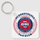 The Pennsylvania State Keychain has a circular typography design with red, white, and blue colours on a white background. The text includes the state's name, capital, state abbreviation, resident's name, region, time zone, geographic coordinates, the year of its statehood, and the country - The United States of America. Unique patriotic gift idea.