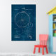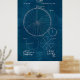An old invention of a Penny Farthing Bicycle patented in 1887 designed for wall art on a blueprint background.
