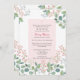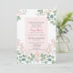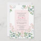 Green eucalyptus leaves and delicate pink flowers, create a beautiful design. Part of the "Penny Collection".