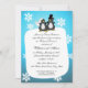 Fun Penquin bride and groom with snowflakes invitation in blue for your winter wedding rehearsal. Personalise text to suit your needs.