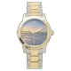 Gold and silver watch featuring waves rolling on shore during this gold hour sunrise by the Pensacola Beach Gulf Pier in Pensacola Beach, Florida, United States. Looking for more products? Visit my store: http://www.zazzle.com/timelessmomentsphtgy Photo was taken by Jennifer White with Timeless Moments Photography. All images are copyrighted.