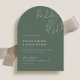 This exquisite invitation captures the essence of your special day with its clean lines, sophisticated typography, and subtle tropical leaf sketches. The deep sage green hue sets the tone for an earthy and inviting celebration.