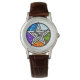 I like the illustrative watch with the lady on it. It is a great reminder that I am blessed and it has a very sturdy leather band. The colors are true and vibrant. Love the color of the Leather also. Very nice.