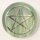 Representing the element of Earth in the Tarot, the pentacle is also associated with prosperity and abundance and groundedness. The pentacle is often confused with the pentagram. The pentagram is the mathematical design itself, while a the pentacle is an object in the shape of a pentagram. The paten is a dish for holding cakes and other offerings or for charging material items and often has a pentacle or pentagram inscribed upon it.