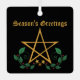 Celebrate the holidays with a touch of mysticism through this square Christmas ornament, featuring a captivating witchy star and leaf design set against a deep black background. With the words "Season's Greetings" elegantly displayed above the enchanting motif, this ornament merges festive cheer with a distinct pagan and Wiccan vibe. Perfect for those who appreciate nature-inspired and spiritual designs, this piece adds a unique, magical flair to any holiday décor. Whether for yourself or as a thoughtful Christmas gift, this ornament is sure to bring a bit of holiday magick to the season!