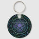 This quirky pentacle keychain features a vibrant mix of green blue purple colour finished as an oil paint print.