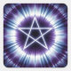 This sticker features a blue white purple tie dye pentagram/pentacle watercolor print.