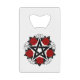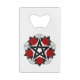 Black pentagram with pattern, decorated with blooming, red roses with leaves on white background. Tattoo style.