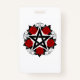 Black pentagram with pattern, decorated with blooming, red roses with leaves on white background. Tattoo style.