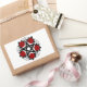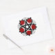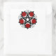 Black pentagram with pattern, decorated with blooming, red roses with leaves on white background. Tattoo style.