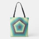 This image features a series of concentric pentagons, each formed by alternating bands of soft teal, mint green, and dark grayish colours. The layers are evenly spaced, creating a tunnel-like, optical illusion effect that draws the viewer’s eye towards the centre. The design combines geometric precision with soothing colour transitions, giving it a modern and slightly hypnotic feel.