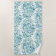 Peonies and butterflies block print, lagoon Blue Beach Towel