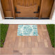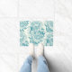 Peonies and butterflies block print, lagoon Blue Doormat