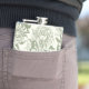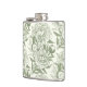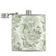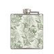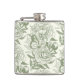 Peonies and butterflies block print, sage green an hip flask