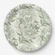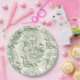 Peonies and butterflies block print, sage green an paper plate