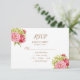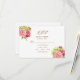 Beautiful peonies and hydrangeas grace this lovely response card for your wedding or special celebration. The RSVP lists a kindly response with date, accept, decline, and number attending. Also, a choice of a main dish menu is included.