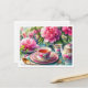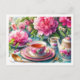 Peonies and Pink Teacup Tea Party Floral Postcard