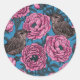 Peonies and wrens on blue classic round sticker