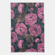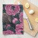 Peonies and wrens on dark gray tea towel
