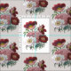 Old-fashioned botanical illustration of peonies in red, pink and white