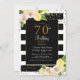70th Birthday Party Invitation. Black and White. For Her. Floral. Peonies and Lemons. Black back.