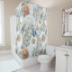 Bring artistic flair to your bathroom with this unique shower curtain design featuring abstract, overlapping peony, and hydrangea blooms in autumn-inspired oranges, blues, and white. Originally painted in watercolor, the dynamic composition adds a modern touch to your decor while capturing the beauty of nature in fall. Perfect for those seeking a creative and sophisticated accent piece. Jenn Steffen Art for Studio Posies.