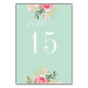 Custom printed wedding table number cards with a beautiful painted floral border in green, pink, white and faux gold foil and accents to match our Peony and gold