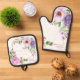 Peony Hebrew Name Oven Mitt + Pot Holder Set