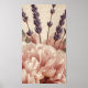 Soft watercolor poster of lavender sprigs and peonies, muted feminine palette, vintage texture.”