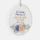 An beautiful Memorial ornament comprising of floral watercolor pale pink and purple peony roses with the quote " In loving memory of ". Makes a lovely memorial keepsake for family members. Personalise with a name and date. quote can be amended if needed. back ground colour can be added.