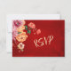 Peony Red RSVP Chinese Wedding Card