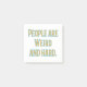 Laugh at yourself and other people. There is no such thing as normal. What makes you weird makes you memorable. Standing out is how you find your tribe.