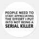 For the sarcasm lover in all of us. Check out this witty “People Really Need to Start Appreciating the Effort I Put Into Not Being a Serial Killer” design on apparel and gifts.