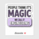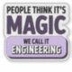 This sleek, modern sticker blends style and STEM with a witty message: “People think it’s MAGIC” — with ‘MAGIC’ boldly emphasized in italic dark purple — followed by a boxed lavender highlight reading “WE CALL IT ENGINEERING” in crisp white text. Set against a soft pastel purple background, this design is clean, fresh, and perfect for laptops, notebooks, desks, or lab walls. A great gift for engineers, developers, students, and anyone who turns logic into everyday magic.