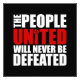 "PEOPLE UNITED WILL NEVER BE DEEATED" SIGN IN BLACK, WHITE AND RED