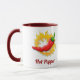 Red chilli pepper with circle of flame. Custom text on both sides.