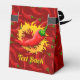 Red chilli pepper with circle of flame on removable seamless pattern background. Custom text on sides.
