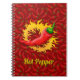 Red chilli pepper with circle of flame over seamless background. Custom text.