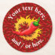 Red chilli pepper with circle of flame on red peppers seamless background. Customise it with your own text.