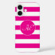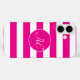 Dress up and protect your iPhone with a Peppy Pink cabana style striped pattern with a round circle design element that is custom monogrammed with your first, middle and last name initials in a stylish Script font. Peppy Pink and White colours