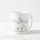 Peptides spelled out in amino acids as P E P T I D E S (Proline Glutamic acid Proline Threonine Isoleucine Aspartic acid Glutamic acid Serine) on a mug for the scientist in you.