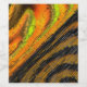 Imagem com tons amarelos e castanhos submetida ao efeito 'mosaico pequeno' e alterada de forma que parte deles se cruzam, e recebeu um efeito que se assemelha à sombra e em outra parte da imagem foram adicionados pequenos detalhes que se assemelham a uma textura de fundo semelhante a uma placa metálica amassada ou martelada.