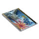 The quest for the Holy Grail (Saint Graal ) makes up an important segment of the legends of King Arthur .Colourful and vibrant contemporary oil painting ,miniature on wooden panel with golden foil in brignt blue,red,white,brown,gold yellow colours, 2010 by Alessandro Lumini . This cool and artistic design is also a beautiful gift for Easter and Christmas Holidays