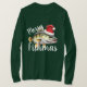 A perch wears a Santa hat and the text reads "Merry Fishmas" on this fun "ugly sweater."