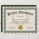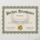 Perfect Attendance Certificate, Customise and fill-in your name, award and other info online. Beautiful woodcut rosettes artwork antique style border. Customised traditional perfect and outstanding attendance to recognise students at school or sports achievement award certificate template.