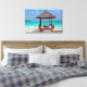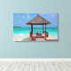 A photograph of a solitary beach hut on a white, sandy beach. The perfect holiday place to relax and unwind. This image is available on a variety of other products, just click the link below the photo near 'About this Design'.