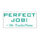 This motivating rubber stamp design features the message "PERFECT JOB!" and a customised educator name. It could be used by a teacher or educator when marking assignments, to acknowledge that a student has done well.