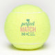 The Perfect Match Personalised Custom Tennis Ball Bridal Shower, Bachelorette Party, or Wedding Favours with a simple, modern, minimalist trendy typography design with calligraphy handwriting and a mix of large sans-serif and bubble serif fonts and space for the couple's initials and wedding date. Shown in teal and pink, but all colours can be changed using Zazzle's template editor. Contact Paper Grape Zazzle Store for help with coordinating items.